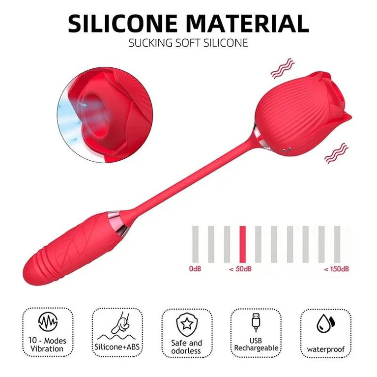 🌹【Safe & Silky Smooth Silicone】rose toy for all humans. Can be used in the pool, bedroom and other places without being heard. For the price of a single item, you can get a two-in one toy.
